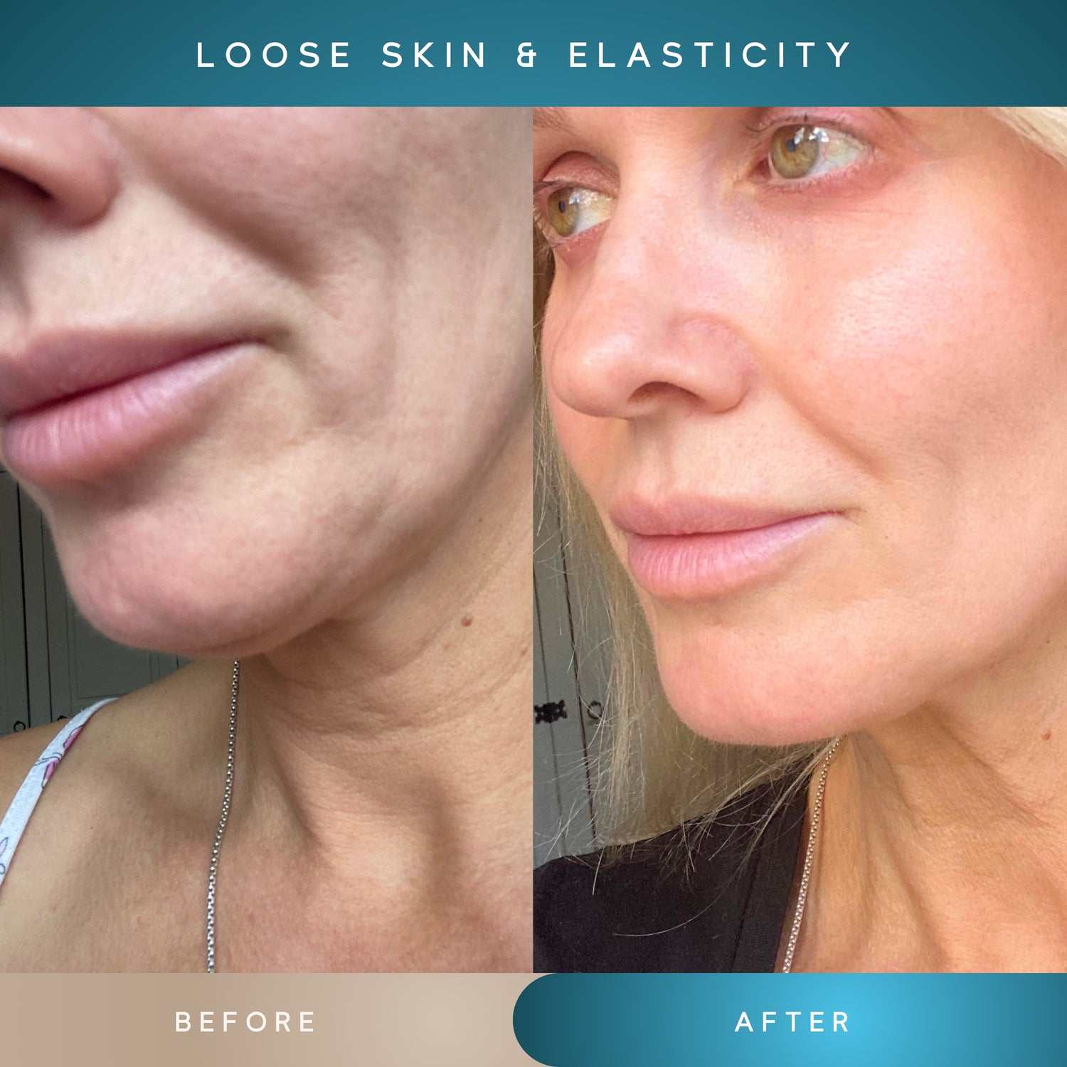 Firmify’s radiofrequency and EMS technologies work together to stimulate collagen and tone facial muscles, helping to restore firmness and bounce to the skin over time.