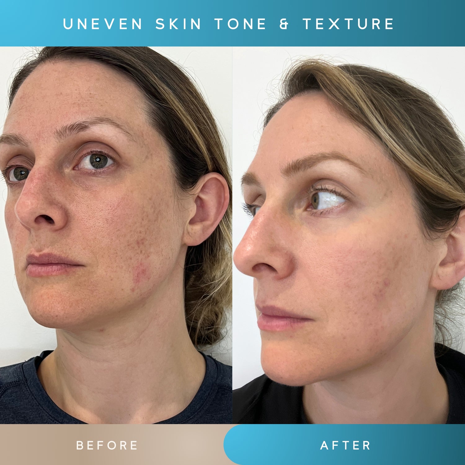 LED light therapy (especially green and yellow modes) helps reduce redness, balance uneven tone, and smooth texture for a more refined, glowing complexion.