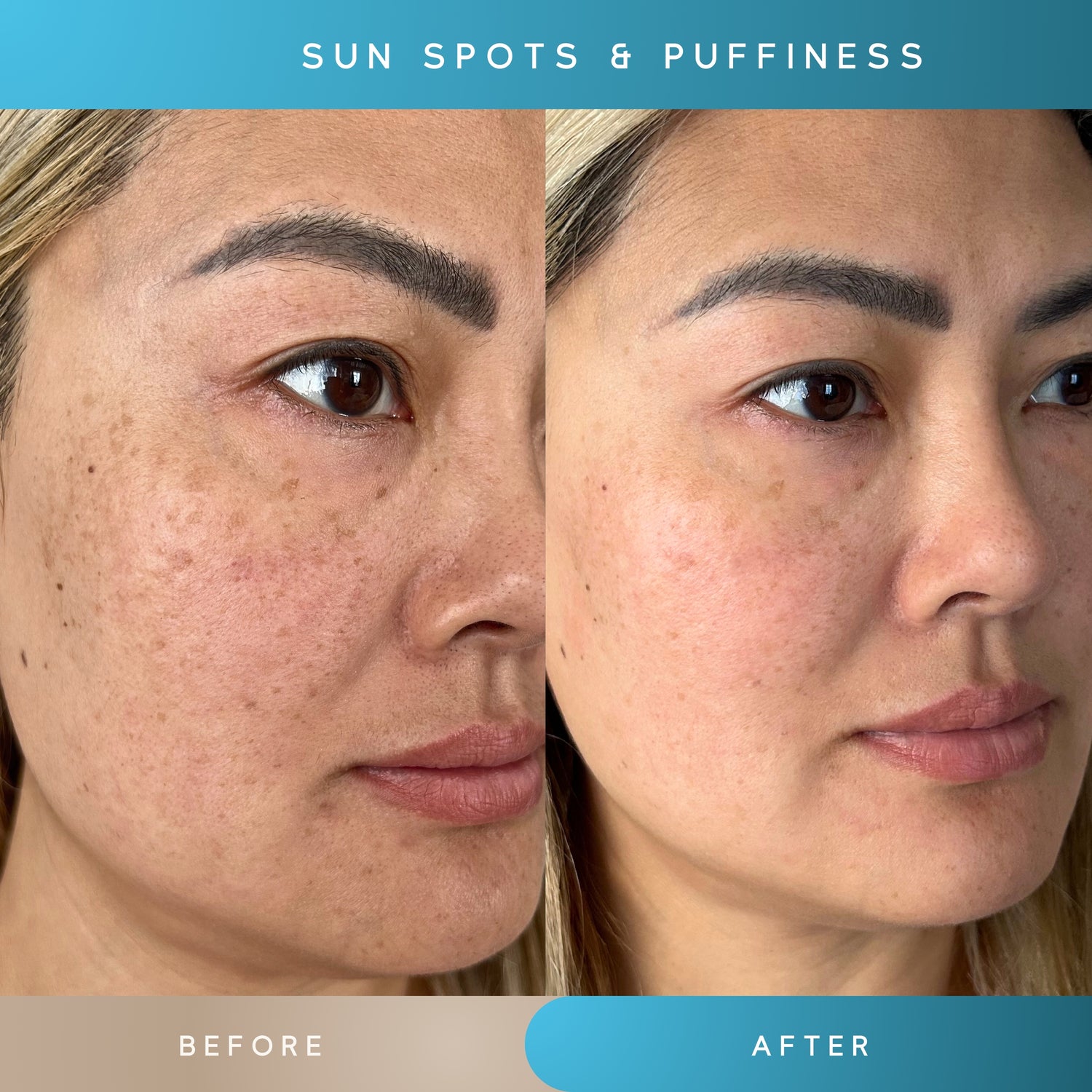Yellow and green LEDs work to gently lighten sun-induced discolouration, supporting skin regeneration and revealing a clearer, more even tone.
